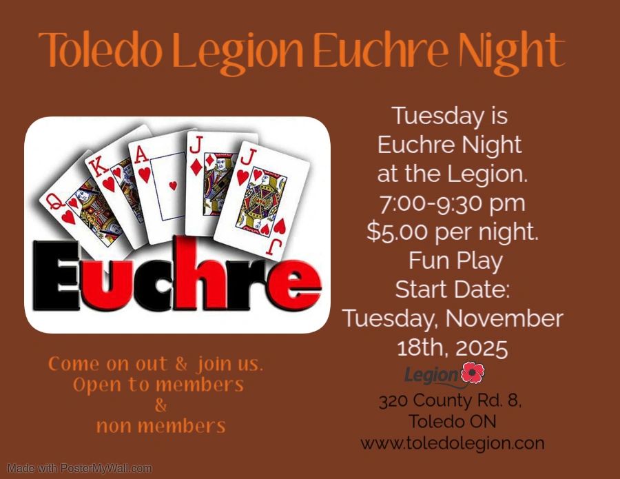 Come on out for Euchre Tuesday nights 7-9:30 pm